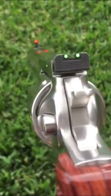 You can also either replace just the front sight with a Hi-Vis front sight with fiber-optic red or green glow rods, or you can also change out the rear sight blade assembly with fiber-optic green rods. I just changed the front sight on my 5 inch bbl GP100 and it makes a world of difference.